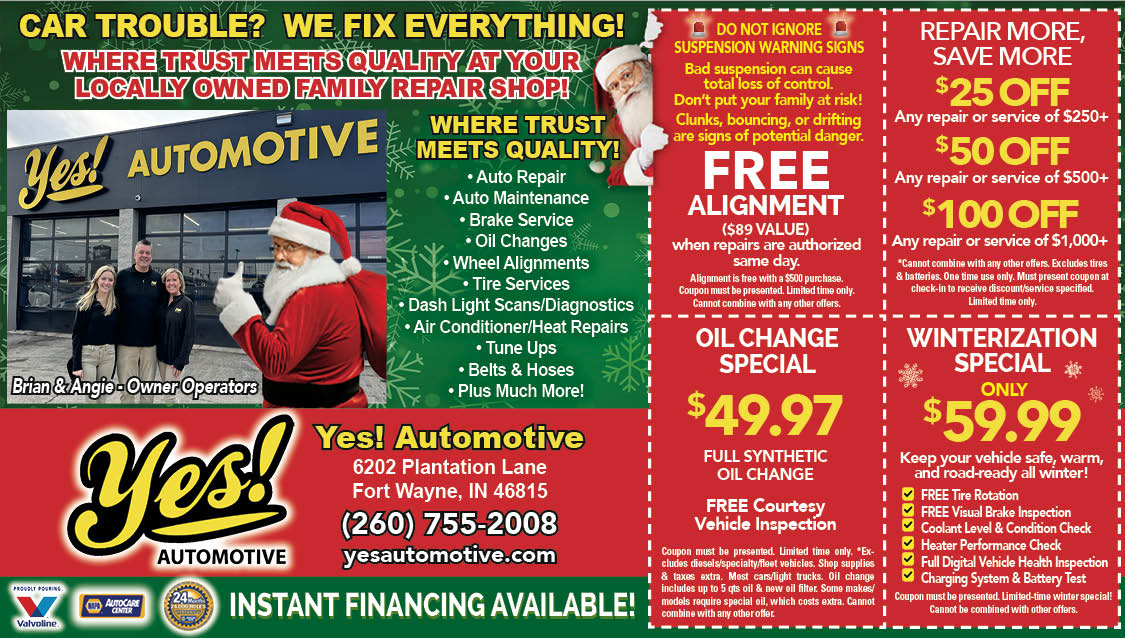 Oil Changes, Battery, Brakes, Steering, Tires, Fluid fills/drains, Belts/Hoses, Suspension Cooling System, Tune ups, Charging System, Check Engine Light diagnostics, Motors, Warranty Work, plus much more!